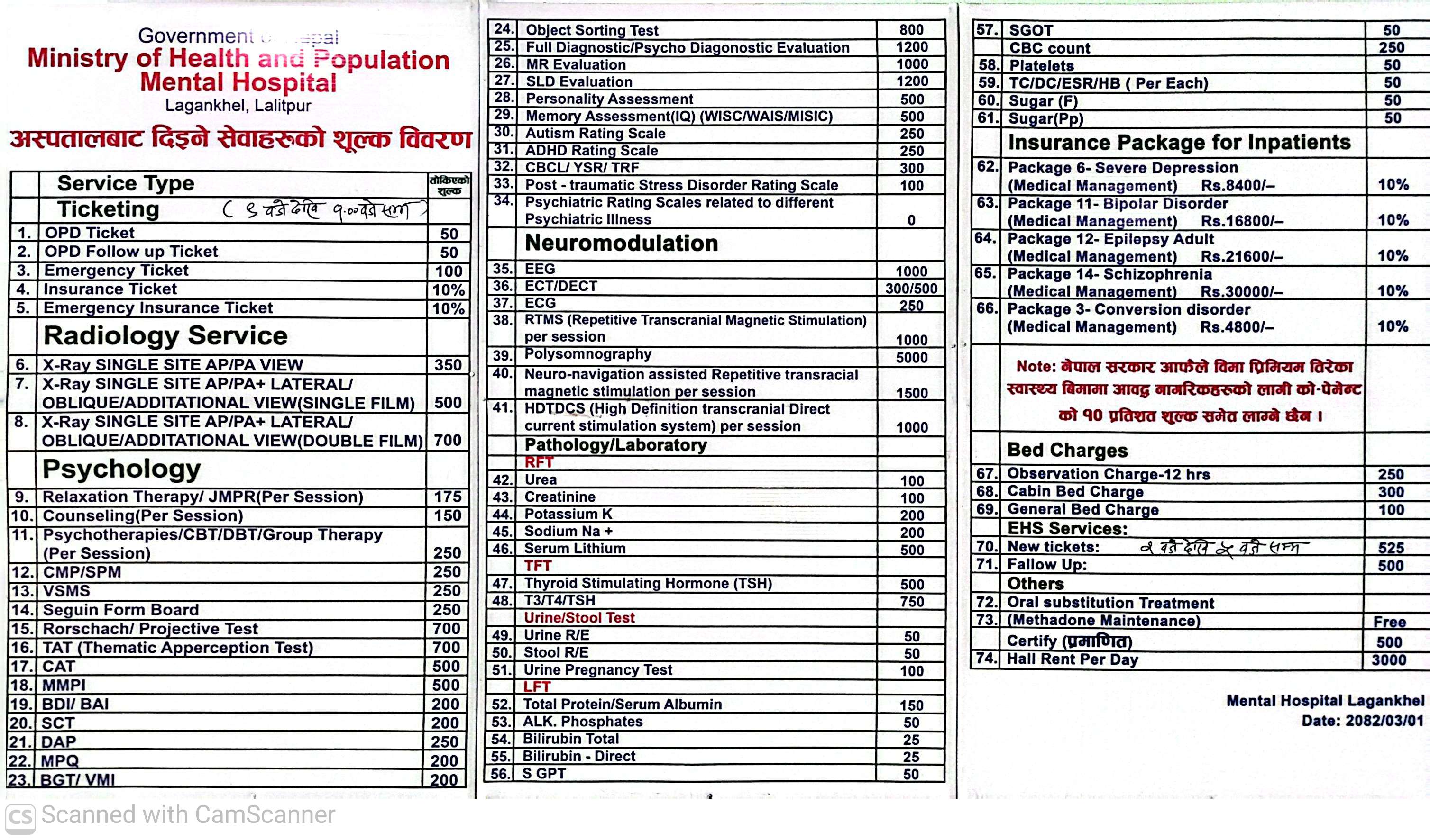 एम एस एस समीक्षा , मानसिक अस्पताल , २०८२