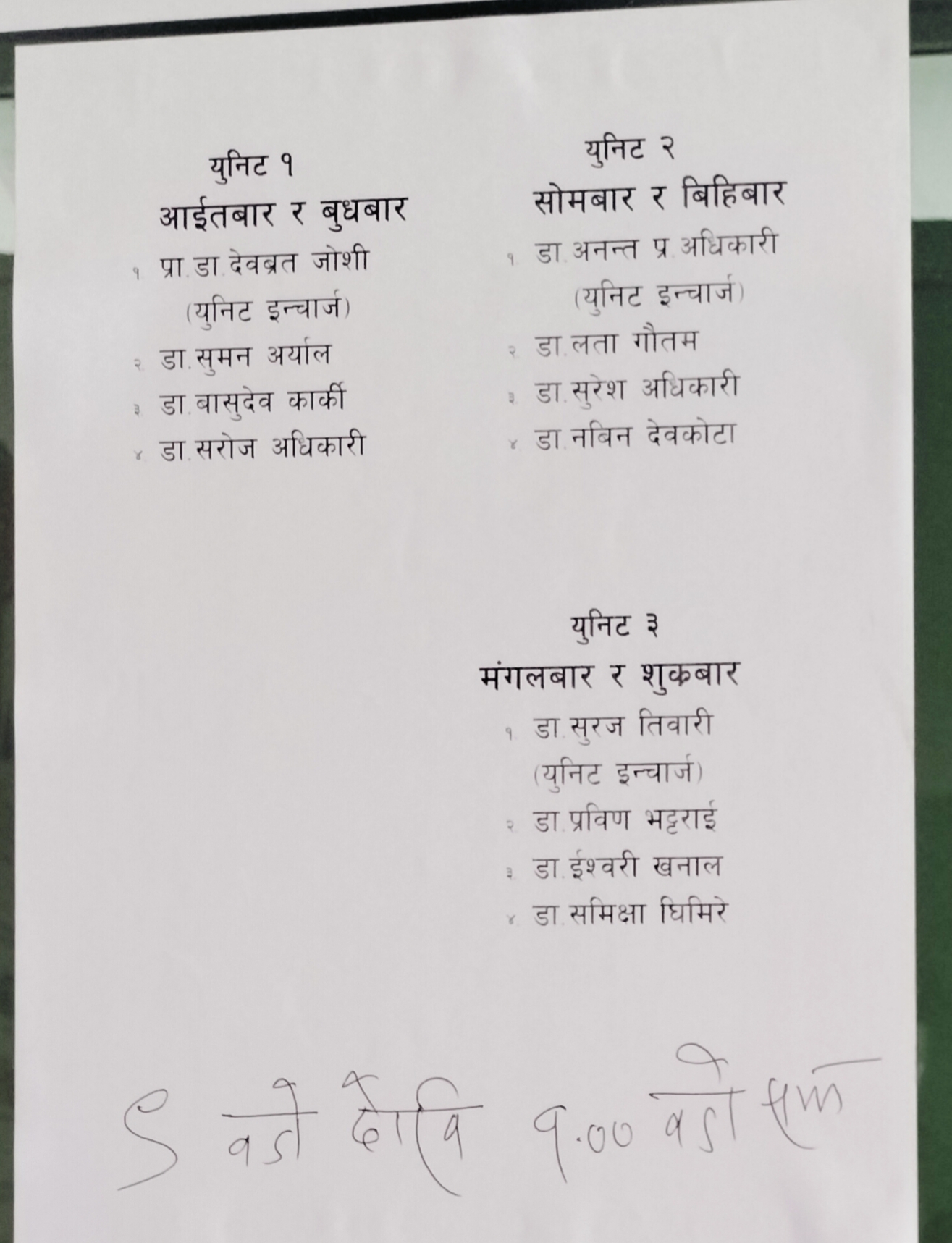 वरिष्ठ मेडिकल रेकर्ड निरीक्षक अधिकृत सातौ (गुनासो सुनुवाई अधिकारी)